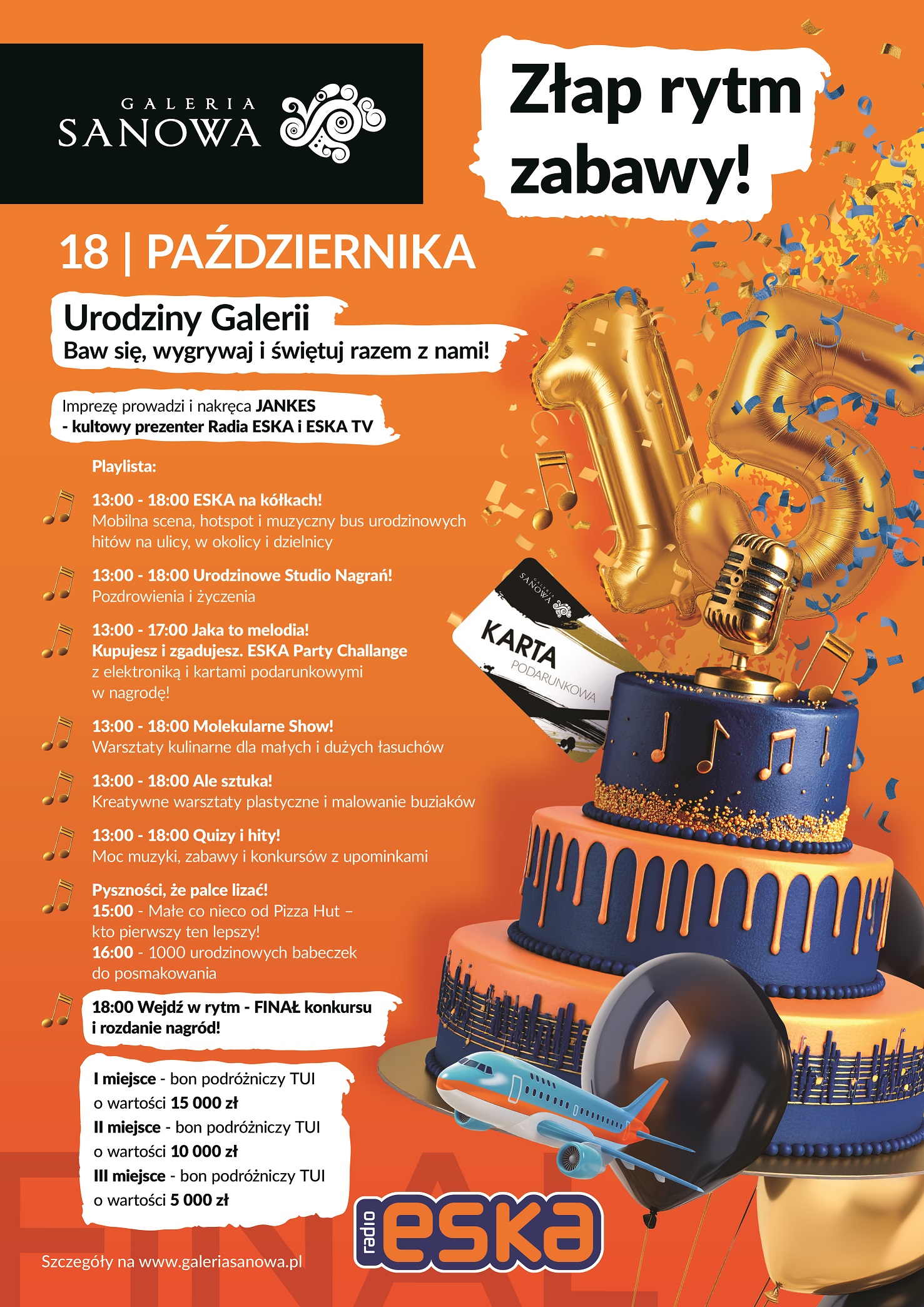 Świętujcie z nami i Radiem ESKA 15. urodziny Galerii Sanowa! To będzie dzień pełen wrażeń, którego nie możecie przegapić!