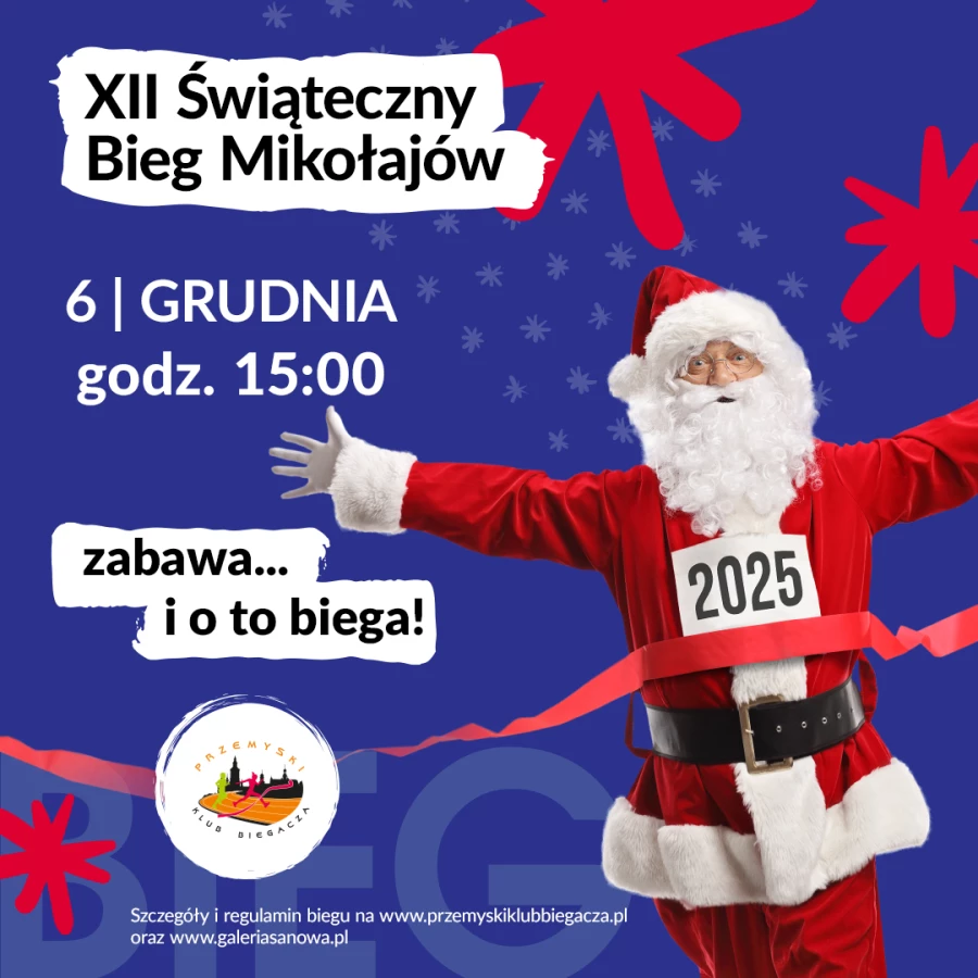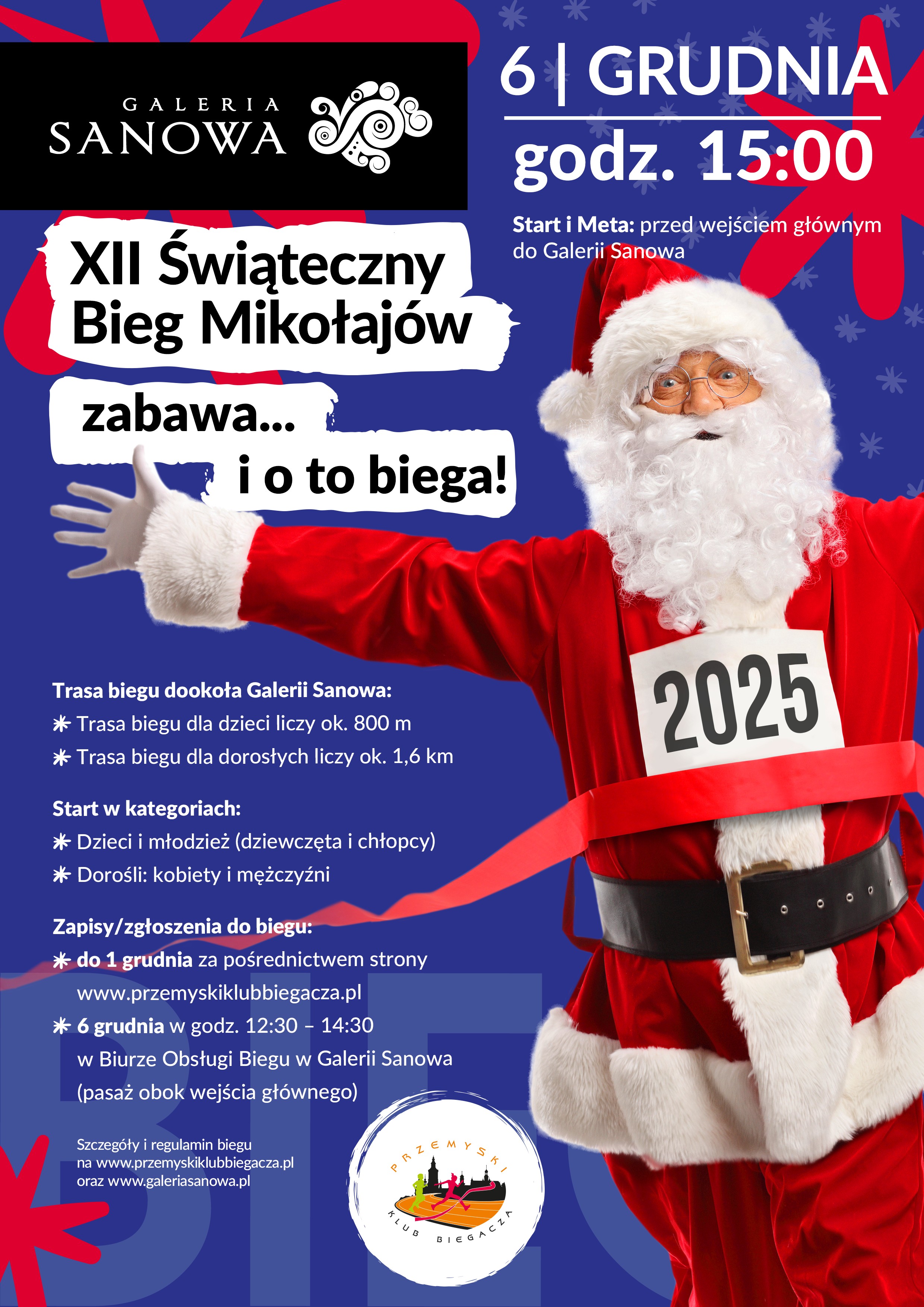 Już po raz dwunasty, wspólnie z Przemyskim Klubem Biegacza, zapraszamy do udziału w Świątecznym Biegu Mikołajów, który w tym roku odbędzie się 6 grudnia (sobota).
