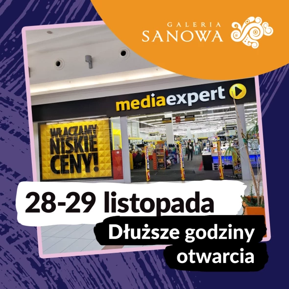 W piątek (TEN szczególny Czarny Piątek) oraz sobotę Media Expert w Galerii Sanowa wyprzedaje dłużej!