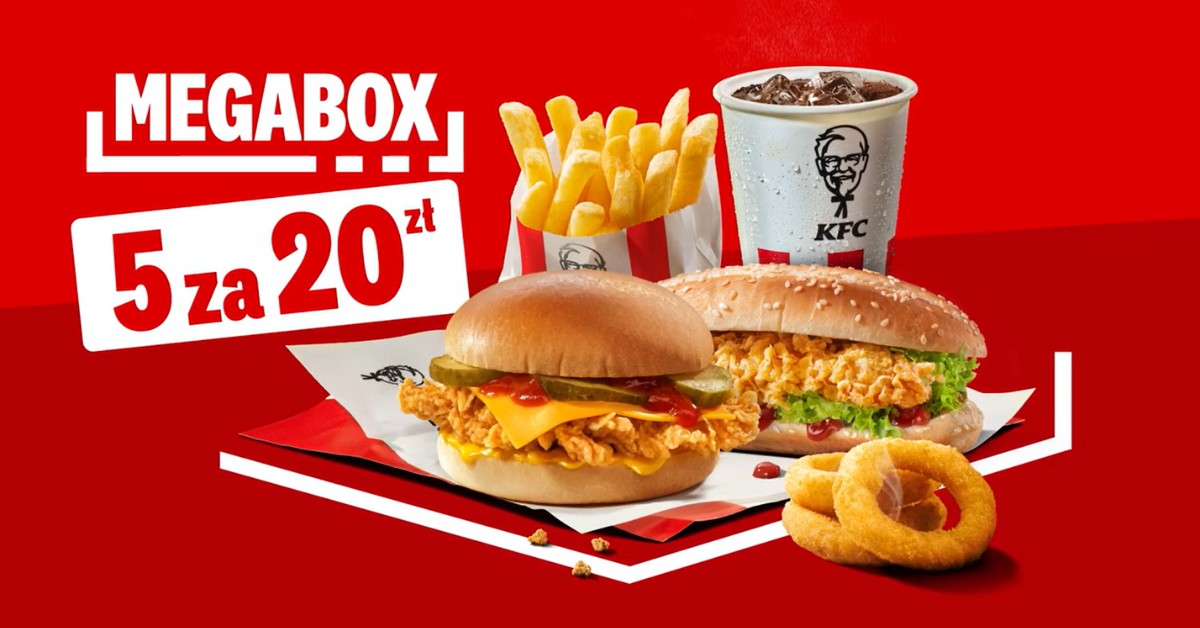 KFC ponownie serwuje propozycję, która łączy w sobie wszystko, co najlepsze. Ikoniczny kurczak, możliwość wyboru i świetna cena - na scenę wjeżdża MegaBox 5 za 20. Ten zestaw udowadnia, że prawdziwa uczta nie musi kosztować fortuny. Delektuj się smakiem ulubionych dań i dodatków za 20 złotych.