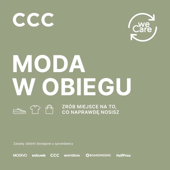 We wszystkich sklepach stacjonarnych CCC, HalfPrice, eobuwie, Boardriders w Polsce rozszerzamy prowadzoną przez nas od 2020 roku zbiórkę używanego obuwia o kolejne kategorie produktów - ubrania i akcesoria!