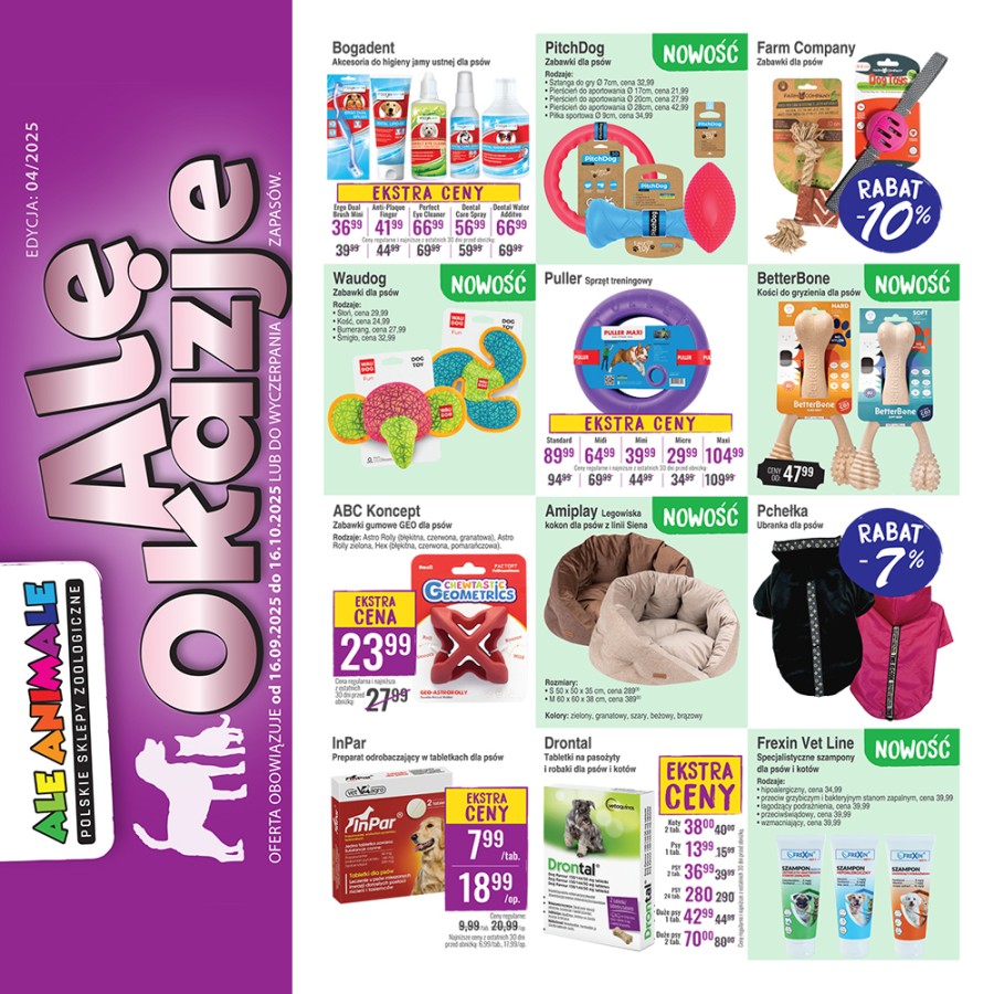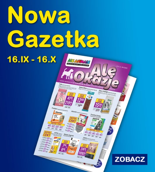 Od 16 września do 16 października obowiązuje nowa gazetka "Ale Okazje" – a w niej znajdziecie wyjątkowe rabaty i atrakcyjne oferty na karmy, akcesoria i przysmaki dla Waszych pupili.