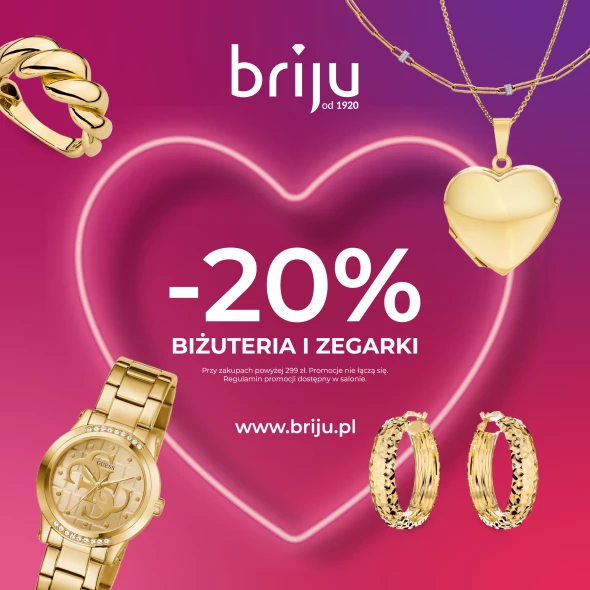 Walentynkowy rabat –20% na biżuterię i zegarki w Briju przy zakupach powyżej 299 zł dla Klientów Programu Lojalnościowego.