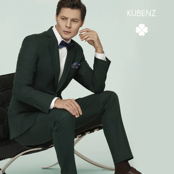 Ciemnozielony garnitur z 52% wysokogatunkowej wełny, gładki, klasyczny, slim już dostępny w salonach KUBENZ!